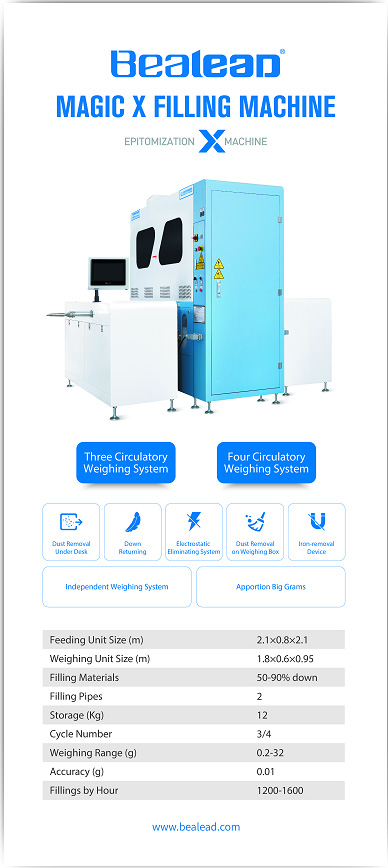 百聯(lián)展品: X型模塊化充絨機、402D全自動絨棉一體機
