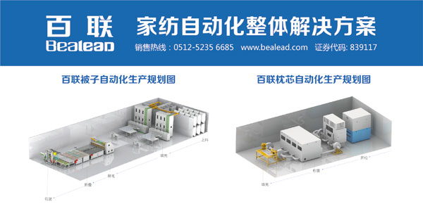 百聯(lián)展品:X型模塊化自動充絨機(jī)、402D全自動絨棉一體機(jī)、1208型全自動充棉枕芯機(jī)