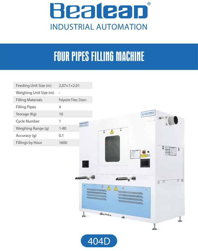 404D全自動稱重棉絨一體機(jī),一臺機(jī)器同時滿足可充棉,珍珠棉,羽絨三種應(yīng)用需求。