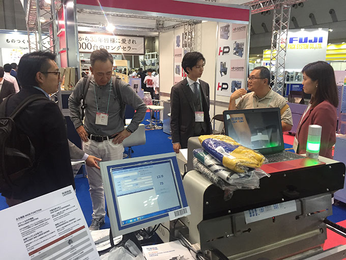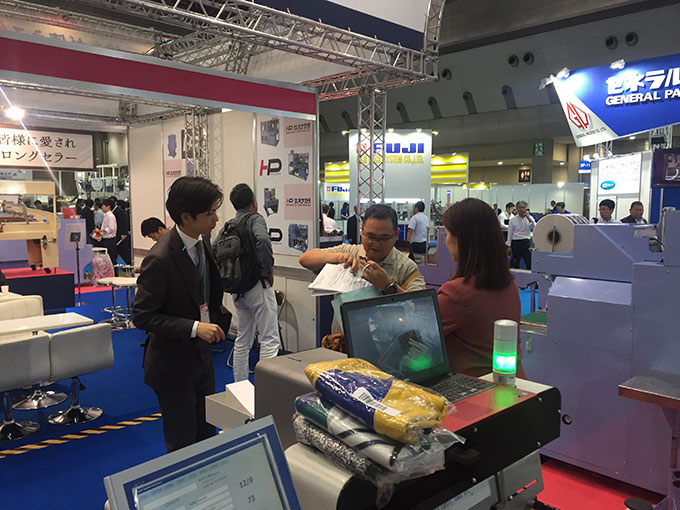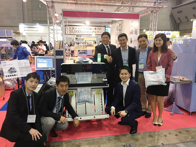 此次展出的P505S型自動(dòng)發(fā)包機(jī)集成驗(yàn)貨、打印、貼標(biāo) 和封口一體化解決方案 ,適用于T 恤、襯衫、連衣裙、牛仔褲等快遞袋形式包裝的服裝企業(yè)。具有智能打印、高效省工、包裝美觀、節(jié)能環(huán)保等多項(xiàng)技術(shù)優(yōu)點(diǎn),吸引了“JAPAN PACK 2017”參觀者的積極關(guān)注。