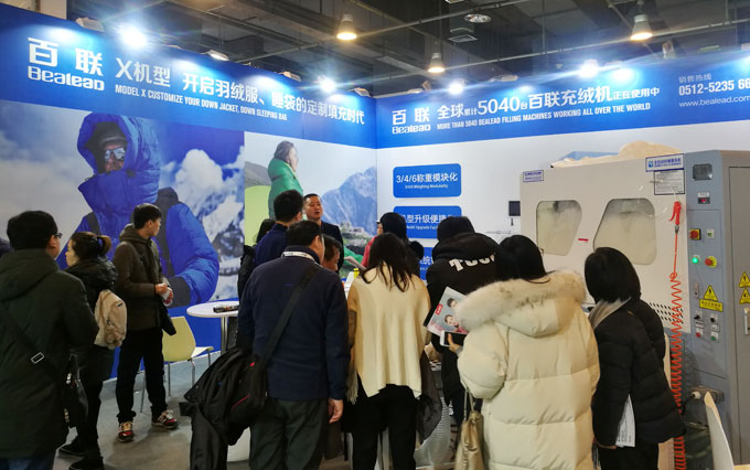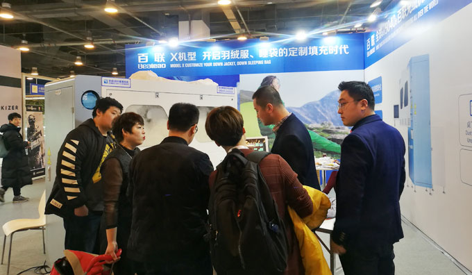 在ISPOBeijing 2018期間,百聯(lián)首次以參展商的身份亮相,展出了可滿足“羽絨服+睡袋”一體化生產(chǎn)需求的X模塊化定制機(jī)型,即在一臺(tái)機(jī)器上實(shí)現(xiàn)了羽絨服、睡袋兩種產(chǎn)品材料的同時(shí)填充,大幅提高了填充效率以及充絨機(jī)的應(yīng)用價(jià)值,得到了現(xiàn)場(chǎng)專業(yè)觀眾的好評(píng)。