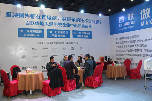 展會現場客戶絡繹不絕,很多都是常熟本地已使用我們百聯(lián)充絨機的老客戶,看到我們百聯(lián)練塘大道羽絨倉儲中心即將落成的消息非常感興趣,我們擁有16家羽絨生產企業(yè)直接供貨,直接采購,無中間環(huán)節(jié);第三方質量監(jiān)管,羽絨有品質保障;400噸現貨倉儲,可隨用隨提。為常熟的用絨企業(yè)減少采購成本,現場客戶了解后就簽約提貨!